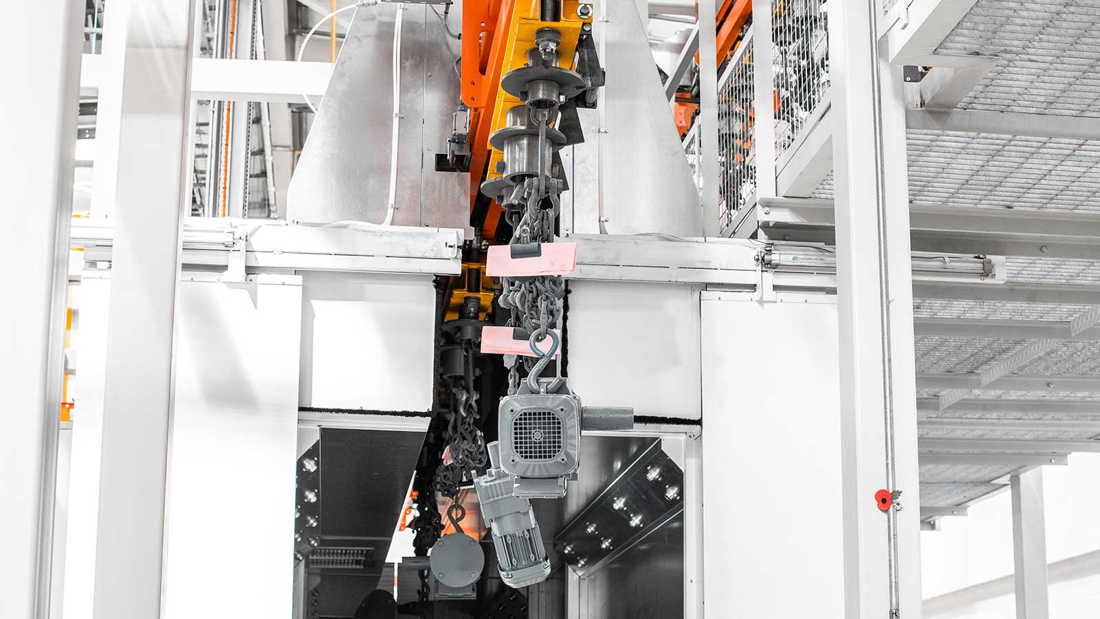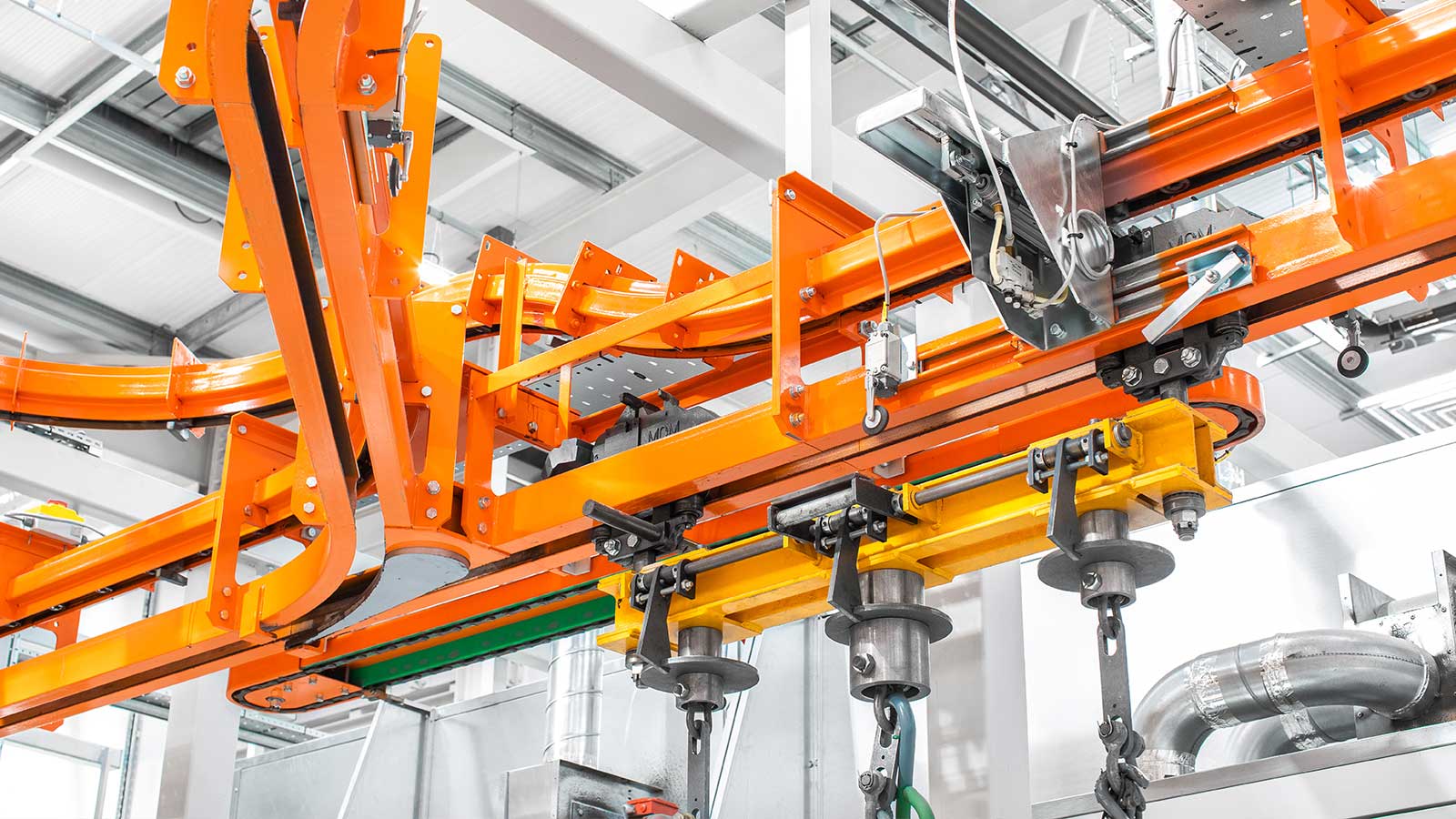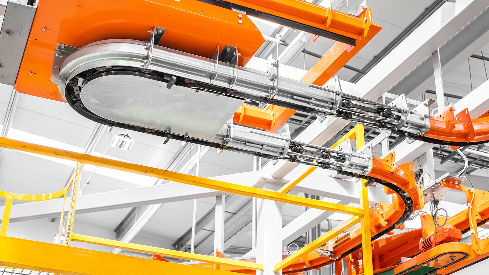 Una gamma di trasportatori aerei a catena "power & free" progettati con la flessibilità necessaria per consentire al prodotto di essere indirizzato lungo percorsi diversi all'interno dello stesso sistema, a seconda della sequenza di processi da applicare. I due binari coestensivi (catena e carrello) del sistema di trasporto MCM Autotrack consentono la formazione di zone di stoccaggio e accumulo, la selezione automatica del percorso e la variazione di velocità. Ciò significa che qualsiasi tipo di prodotto può essere identificato (elettronicamente o con indicatori meccanici) e inviato automaticamente a destinazioni specifiche, ad esempio linee di impianti di processo, linee di assemblaggio, stazioni di ispezione e zone di scarico, ecc., in qualsiasi sequenza desiderata.
