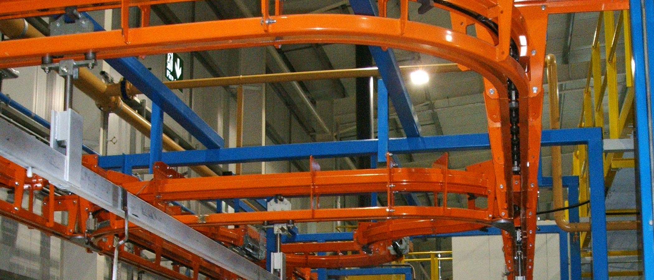 I binari a catena sono montati sopra il binario del carrello e ad esso collegati tramite morsetti/flange. È questo concetto progettuale di un binario a catena separato e di un binario a carrello libero che conferisce alla gamma di trasportatori MCM Autotrack la sua grande versatilità, consentendo di adattarli alle esigenze di praticamente tutti gli ambienti produttivi. Il termine generico "Power & Free" deriva anche dal concetto di doppio binario.